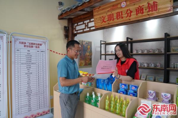 從細(xì)處入手,讓環(huán)境美和人文美相得益彰。2022年1月,大田鄉(xiāng)開始試行文明積分管理辦法,設(shè)立“積分商鋪”和“積分榜”,探索實(shí)踐文明鄉(xiāng)村創(chuàng)建工作新模式,對(duì)包括理論政策宣傳、環(huán)境衛(wèi)生整治、關(guān)愛孤寡老人等六大類十二項(xiàng)指標(biāo)進(jìn)行積分,并以積分兌換的方式引導(dǎo)群眾從小處著眼,做文明村民。