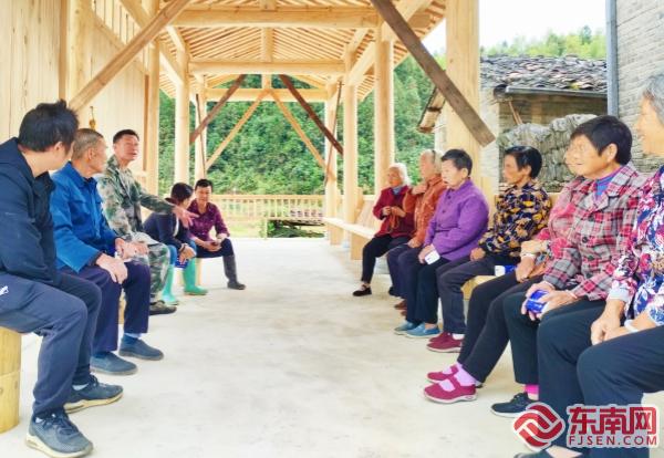 新橋鄉(xiāng)新橋村村民議事廳內(nèi)村民們討論著“155”能人服務(wù)工作機(jī)制帶來的便利
