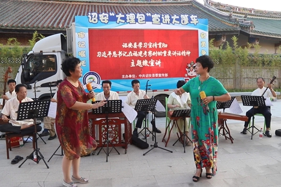 詔安縣“大理包”宣講隊(duì)因地制宜用好各類場(chǎng)地、激活各種資源,讓“隨時(shí)隨地學(xué)習(xí),隨時(shí)隨地感受奮進(jìn)力量”成為理論宣講的新風(fēng)尚。