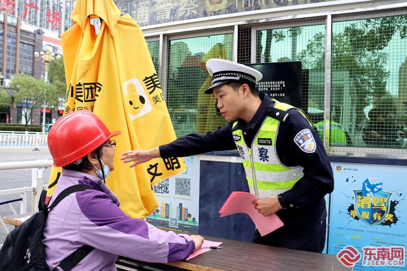 南平市公安局交警支隊建陽大隊民警在黃花山路開展“一盔一帶”文明交通勸導(dǎo) 南平市公安局交警支隊供圖