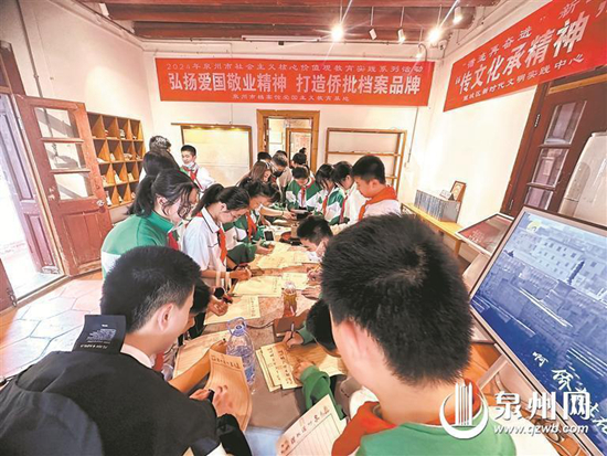 泉州僑批館與各單位、高校合作共建,將文化傳承與優(yōu)質(zhì)服務(wù)深度融合,共同設(shè)立僑批主題黨日活動(dòng)、青少年校外活動(dòng)基地、僑情教育基地等,為各部門各團(tuán)體開展愛國主義教育、僑情僑史教育提供優(yōu)質(zhì)服務(wù)。