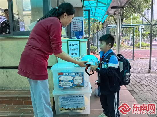 學(xué)生借用安全頭盔(集美區(qū)委文明辦供圖)
