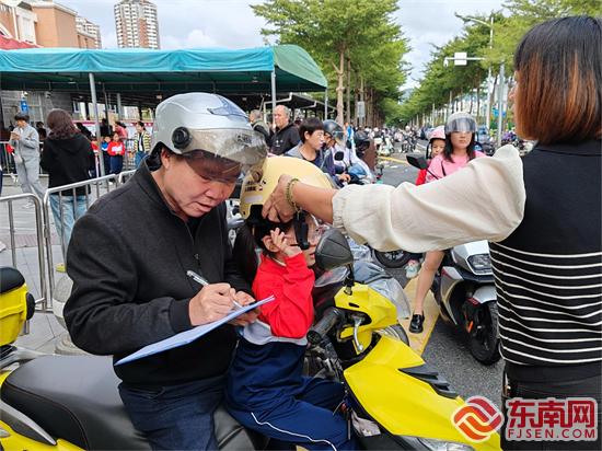 家長登記相關(guān)信息,借用安全頭盔(集美區(qū)委文明辦供圖)