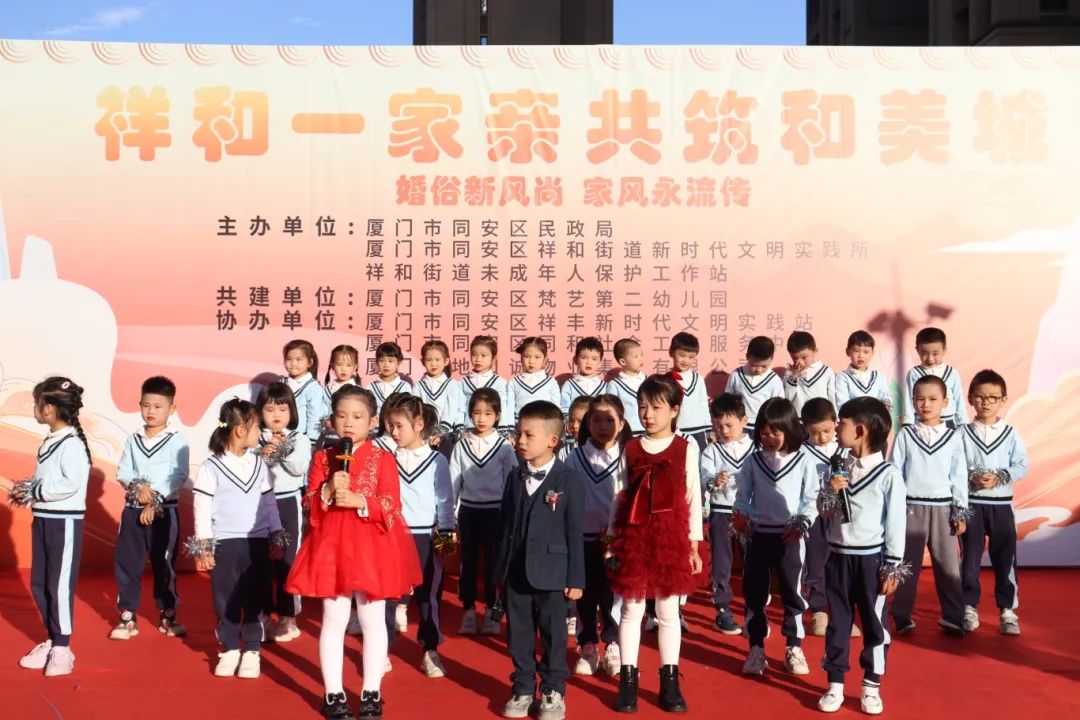 文明風(fēng)12月1日訊 通過“小文藝”講好大道理,將移風(fēng)易俗主題內(nèi)容以群眾喜聞樂見的方式展演出來。11月27日,祥和一家親,共筑和美城——“婚俗新風(fēng)尚,家風(fēng)永流傳”文藝匯演在祥和街道舉辦。此次活動(dòng)由廈門市同安區(qū)民政局、廈門市同安區(qū)祥和街道新時(shí)代文明實(shí)踐所、祥和街道未成年人保護(hù)工作站聯(lián)合主辦,廈門市同安區(qū)祥豐新時(shí)代文明實(shí)踐站、廈門市同安區(qū)同和社會(huì)工作服務(wù)中心、廈門天地和誠物業(yè)集團(tuán)有限公司協(xié)辦,共建單位廈門市同安區(qū)梵藝第二幼兒園參與。