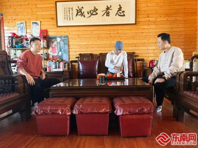林小彬(左一)、陳曉陽(右一)兄弟向陳秋涼(中)討教調(diào)解經(jīng)驗(yàn)。今日海滄供圖