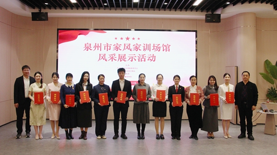 “家風(fēng)似春雨,潤物細無聲;家訓(xùn)如燈塔,指引代代行……”活動現(xiàn)場,來自泉州市各縣(市、區(qū))的家風(fēng)家訓(xùn)館講解員及推薦官齊聚一堂,通過情景再現(xiàn)、音視頻結(jié)合、PPT演示等精彩紛呈的形式,講解展示了各自所在場館的基本情況、特色亮點和家風(fēng)家訓(xùn)背后的故事。其中,鯉城區(qū)家事文化館講解員向大家推介全國法院首家以家事文化為主題的獨立展館,展現(xiàn)出法治多功能廳的獨特魅力;永春縣“我愛我家——家風(fēng)文化園”的講解員將永春籍南洋華僑機工心系祖國的崢嶸歲月娓娓道來;“家傳一首冰壺賦,庭茁千尋玉樹枝”,安溪縣湖頭鎮(zhèn)家風(fēng)家訓(xùn)館講解員講述了一代名相背后家庭教育的力量;臺商投資區(qū)龍蒼家風(fēng)家訓(xùn)館則通過情景劇演繹莊鼎水先生的感人事跡,館中20條承載著龍蒼輩輩代代的村規(guī)家訓(xùn)令人印象深刻。