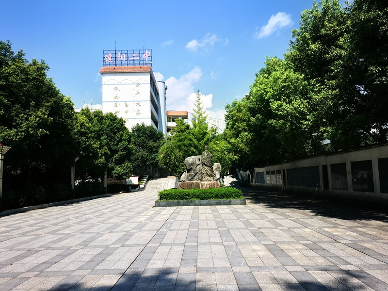 建陽二中朱子廣場,右邊是朱子文化墻,中間是朱熹銅像 建陽區(qū)教育局供圖