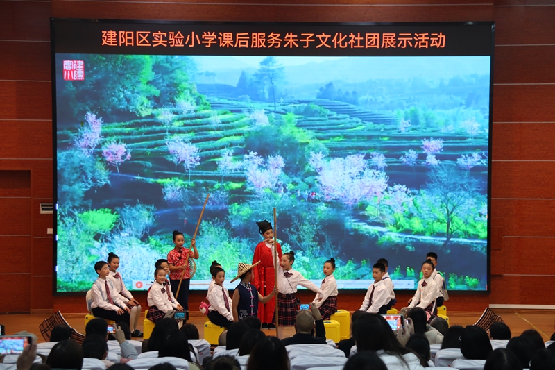 建陽區(qū)實驗小學(xué)開展課后服務(wù)朱子文化社團展示活動,社團孩子表演音詩畫《九曲春日》 建陽區(qū)教育局供圖
