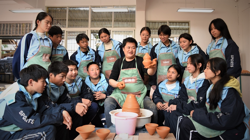 圖為建陽區(qū)水吉中學(xué)學(xué)生在觀摩學(xué)習(xí)建盞制作技藝建陽區(qū)教育局供圖