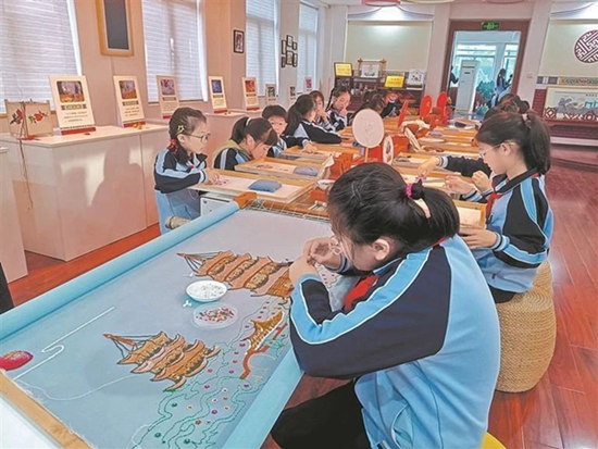 學(xué)生們興致勃勃地體驗(yàn)金蒼繡