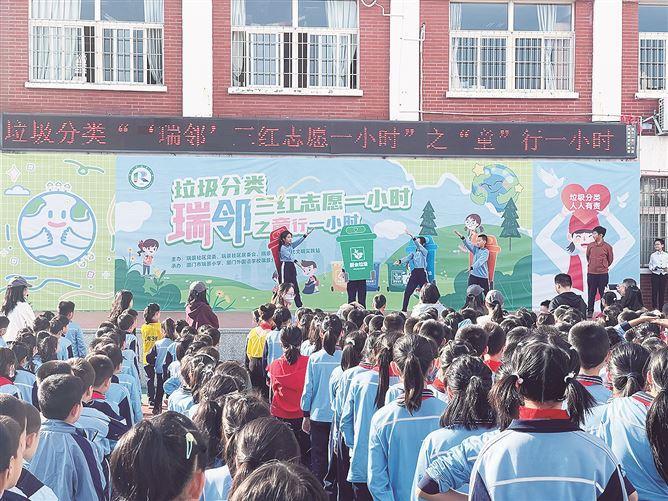 “他們不要的垃圾都?xì)w我!”垃圾分類主題情景劇表演中,瑞景小學(xué)的萌娃扮演的垃圾桶引得臺下的師生們笑聲不斷。12月4日,蓮前街道瑞景社區(qū)聯(lián)合瑞景小學(xué)開展垃圾分類“童”行一小時活動,這也是社區(qū)垃圾分類“‘瑞鄰’三紅志愿一小時”系列活動之一,面向轄內(nèi)青少年群體,將學(xué)校垃圾分類教育延伸到家庭和社區(qū)。