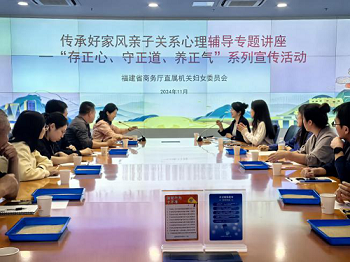 文明風(fēng)12月27日訊 近日,福建省商務(wù)廳舉辦“存正心、守正道、養(yǎng)正氣”系列宣傳活動之傳承好家風(fēng)親子關(guān)系心理健康輔導(dǎo)專題講座,省商務(wù)廳機關(guān)、廳屬事業(yè)單位干部職工代表參加。