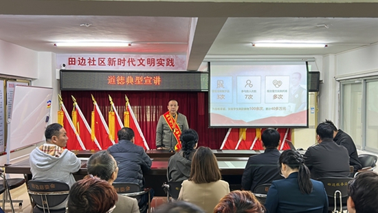 當(dāng)天,一場“凝聚榜樣力量 踐行核心主義價值觀”主題宣講在田邊社區(qū)新時代文明實踐站舉行。這是泉州市委文明辦黨員干部踐行“我在文明實踐中心(所、站)做宣講”的具體行動。福建省道德模范、泉州市公務(wù)用車平臺駕駛員、“時代新風(fēng)傳播人”史玉陽作《勇者無畏、為善無悔》主題宣講,講述自己多年來擒拿小偷、勇斗歹徒及熱心公益的事跡;泉州市道德模范、豐澤區(qū)婦幼保健院院長、“時代新風(fēng)傳播人”阮伏龍則以《為“生命的搖籃”點一盞燈》為題,分享自己作為醫(yī)務(wù)人員在呵護(hù)母嬰健康方面所做的努力,以及關(guān)愛孤獨癥兒童,助力健全豐澤區(qū)孤獨癥兒童篩查干預(yù)工作體系的故事。道德模范們的深情講述感人至深,贏得觀眾陣陣掌聲,營造了社區(qū)崇德向善,見賢思齊的濃厚氛圍。