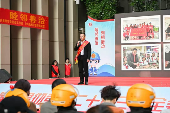 “大家辛苦了,感謝你們?yōu)槿莩鞘薪ㄔO(shè)作貢獻(xiàn),也提前給你們拜個(gè)年!”“這個(gè)開(kāi)水壺能用嗎?配套一定要實(shí)用。”“有什么困難找工會(huì),我們會(huì)竭盡所能提供幫助?!薄?月3日上午,泉州市總工會(huì)啟動(dòng)2025年“兩節(jié)”送溫暖活動(dòng)。慰問(wèn)組走進(jìn)重點(diǎn)工程、重大項(xiàng)目施工一線人員,“暖新驛站”快遞員、外賣配送員以及小區(qū)物業(yè)的保安、保潔等群體中間,為他們送上工會(huì)“娘家人”的新春美好祝福。