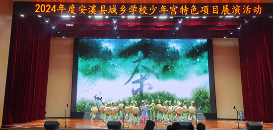 為貫徹落實(shí)黨的二十屆三中全會(huì)精神,深化“扣好人生第一粒扣子”主題教育實(shí)踐,培育和踐行社會(huì)主義核心價(jià)值觀,打造“一宮一品”特色活動(dòng)項(xiàng)目,引導(dǎo)未成年人傳承弘揚(yáng)中華優(yōu)秀傳統(tǒng)文化,1月2日下午,2024年度安溪縣城鄉(xiāng)學(xué)校少年宮特色項(xiàng)目展演活動(dòng)在安溪恒興中學(xué)舉行。經(jīng)組織對(duì)37所學(xué)校少年宮報(bào)送的項(xiàng)目視頻進(jìn)行評(píng)選,16個(gè)入圍優(yōu)秀特色項(xiàng)目參加現(xiàn)場(chǎng)展演??h委宣傳部、縣教育局有關(guān)領(lǐng)導(dǎo),全縣各學(xué)校少年宮主任、輔導(dǎo)員和參演師生500多人參加活動(dòng)。