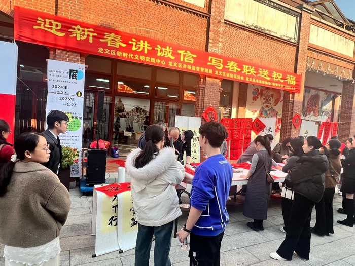 龍文區(qū)新時(shí)代文明實(shí)踐中心、區(qū)委宣傳部(文明辦)、區(qū)市場(chǎng)監(jiān)督管理局、區(qū)誠(chéng)信促進(jìn)會(huì)、區(qū)書法家協(xié)會(huì)、閩南水鄉(xiāng)聯(lián)合主辦的“弘揚(yáng)誠(chéng)信文化 倡導(dǎo)誠(chéng)信經(jīng)營(yíng)”主題文明實(shí)踐活動(dòng)在閩南水鄉(xiāng)書畫館舉辦。在“誠(chéng)信經(jīng)營(yíng),從我做起”簽名倡導(dǎo)儀式上,志愿者現(xiàn)場(chǎng)發(fā)放誠(chéng)信經(jīng)營(yíng)倡導(dǎo)書,區(qū)誠(chéng)信促進(jìn)會(huì)會(huì)員、閩南水鄉(xiāng)各商戶紛紛上臺(tái)簽名,共同倡導(dǎo)“誠(chéng)信經(jīng)營(yíng),從我做起”,在“迎新春講誠(chéng)信,寫春聯(lián)送祝?!被顒?dòng)中,區(qū)新時(shí)代文明實(shí)踐中心文化體育志愿服務(wù)隊(duì)8位省級(jí)書畫家現(xiàn)場(chǎng)書寫并贈(zèng)送誠(chéng)信主題春聯(lián),吸引大量周邊群眾和閩南水鄉(xiāng)游客前來(lái)參與。