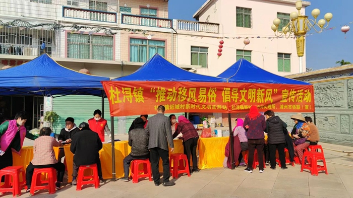 春節(jié)將至,漳州古雷開發(fā)區(qū)杜潯鎮(zhèn)新時(shí)代文明實(shí)踐所正積極開展“推動(dòng)移風(fēng)易俗 倡導(dǎo)文明新風(fēng)”主題宣傳活動(dòng),旨在引導(dǎo)群眾摒棄鋪張浪費(fèi)、婚喪大操大辦等陳規(guī)陋習(xí),樹立勤儉節(jié)約、文明健康的生活方式,讓文明之風(fēng)“吹入”尋常百姓家。