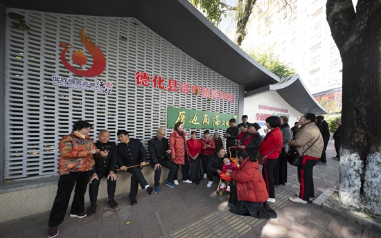 群眾在厝邊角落文化長廊交流“三字經(jīng)”表演錄像觀影感受。鄭永集 供圖