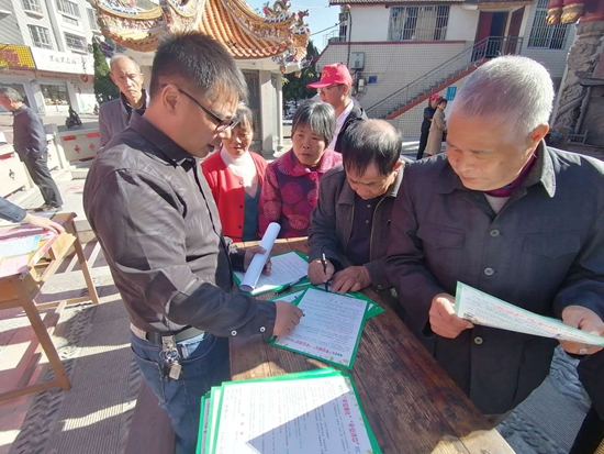 村民有序簽訂承諾書 。林劍錚 供圖