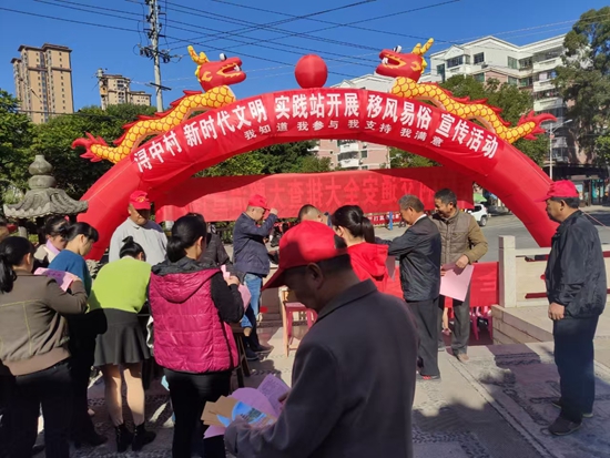 潯中村開展移風(fēng)易俗宣傳活動,發(fā)放各類宣傳材料。林劍錚 供圖