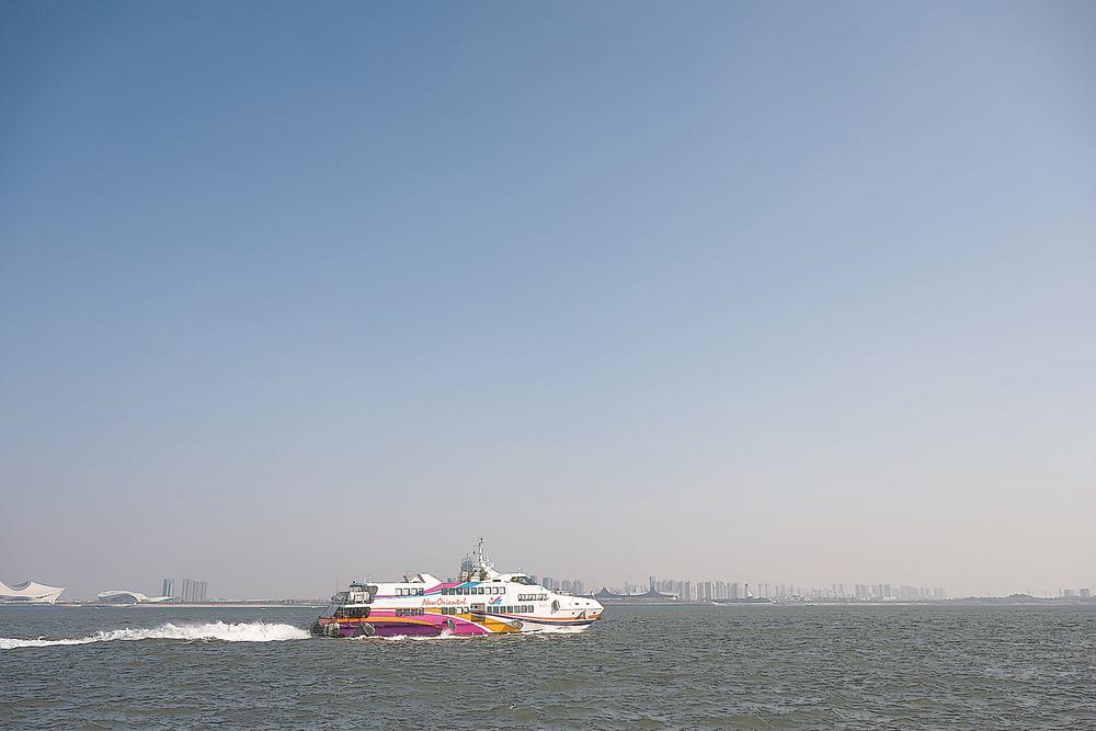 2025年1月17日,一艘廈金航線客輪從廈門五通碼頭駛往金門。春運(yùn)期間,廈金“小三通”航線每半小時(shí)就有一班客輪進(jìn)出港。王毅 攝