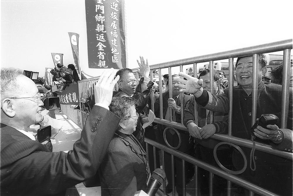 2001年2月6日,元宵節(jié)前一天,金門料羅港,在閩金門同胞省親團(tuán)還未出關(guān)就受到親人的熱烈歡迎。當(dāng)天,他們乘“鼓浪嶼”號(hào)客輪由廈門直航金門,從此拉開了“兩門”對(duì)開的序幕。梁偉 攝
