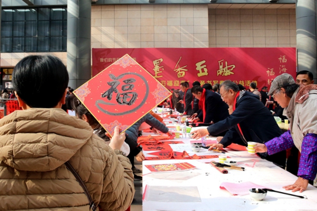 書法家們?yōu)槿罕姇鴮懘郝?lián)和“?!弊?。 李昕彤 攝