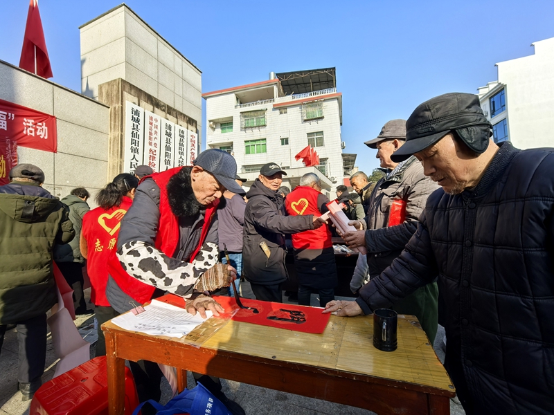 近日,由浦城縣委老干部局、縣老區(qū)建設(shè)促進(jìn)會、縣民政局、浦城縣老年書畫藝術(shù)研究會聯(lián)合主辦的“移風(fēng)易俗樹新風(fēng) 翰墨凝香送春?!?025迎新春送春聯(lián)文化下鄉(xiāng)惠民活動走進(jìn)仙陽鎮(zhèn),以文化形式獻(xiàn)上蛇年新春祝福。