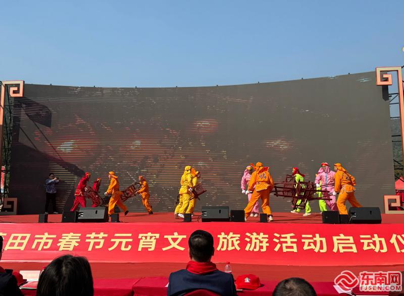 文旅推介情景劇《來莆田過大年》中,演員們通過生動的表演向在場的嘉賓及觀眾展示了擺棕轎、南少林武術、搖櫓行酒、打鐵花等莆田豐富的春節(jié)非遺項目,并向大家發(fā)出“來莆田過大年”的誠摯邀請。