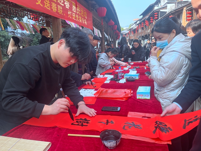 此外,活動(dòng)還精心安排了義寫春聯(lián)、猜燈謎和免費(fèi)拍攝全家福等服務(wù)項(xiàng)目,不僅送上了貼心關(guān)懷,也增添了濃濃的年味,為群眾帶來了歡樂和美好回憶。