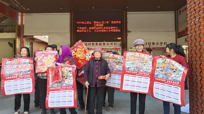 1月17日上午,由荔城區(qū)新時代文明實踐中心、區(qū)總工會、江邊村新時代文明實踐站主辦的“賞年畫 過大年”主題文明實踐活動在江邊村舉辦。現(xiàn)場,十幾副色彩鮮艷,內容豐富的年畫作品吸引了村民們駐足觀賞,喜慶多彩的年畫內容,讓大家感受歡樂的春節(jié)氛圍的同時,也認識到優(yōu)秀傳統(tǒng)節(jié)日的意義?,F(xiàn)場,志愿者們還為村民們分發(fā)年畫制作的掛歷以及新春大禮包,向大家傳達新年祝福。工作人員還向現(xiàn)場群眾宣傳移風易俗相關內容,引導大家積極行動起來,爭做新風正氣的積極倡導者、主動傳播者和自覺踐行者,共同營造良好的社會風氣。