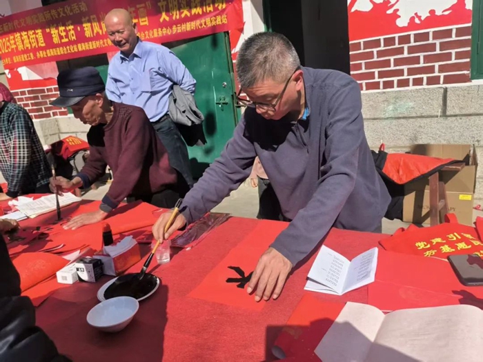 1月14日上午,鎮(zhèn)海街道步云村新時代文明實踐站開展 “新生活·新風尚·新年畫”文明實踐活動,為廣大群眾送去新春祝福。來自莆田市楹聯(lián)學會的書法家們揮毫潑墨,筆走龍蛇,一副副寓意吉祥的春聯(lián)躍然紙上。一旁的年畫展覽也吸引了眾多目光。一幅幅精美的年畫展現(xiàn)了傳統(tǒng)文化的獨特魅力,有象征著團圓的“全家福”,有寓意著豐收的“五谷豐登”,還有吉祥喜慶的“娃娃舞”。 老人們站在年畫前回憶著往昔過年的情景,年輕人們則驚嘆于年畫的精美工藝和深厚文化內涵。此次活動不僅豐富了居民的精神文化生活,更增進了鄰里之間的交流與互動,讓大家在感受傳統(tǒng)文化魅力的同時,也收獲了滿滿的歡樂和溫暖。