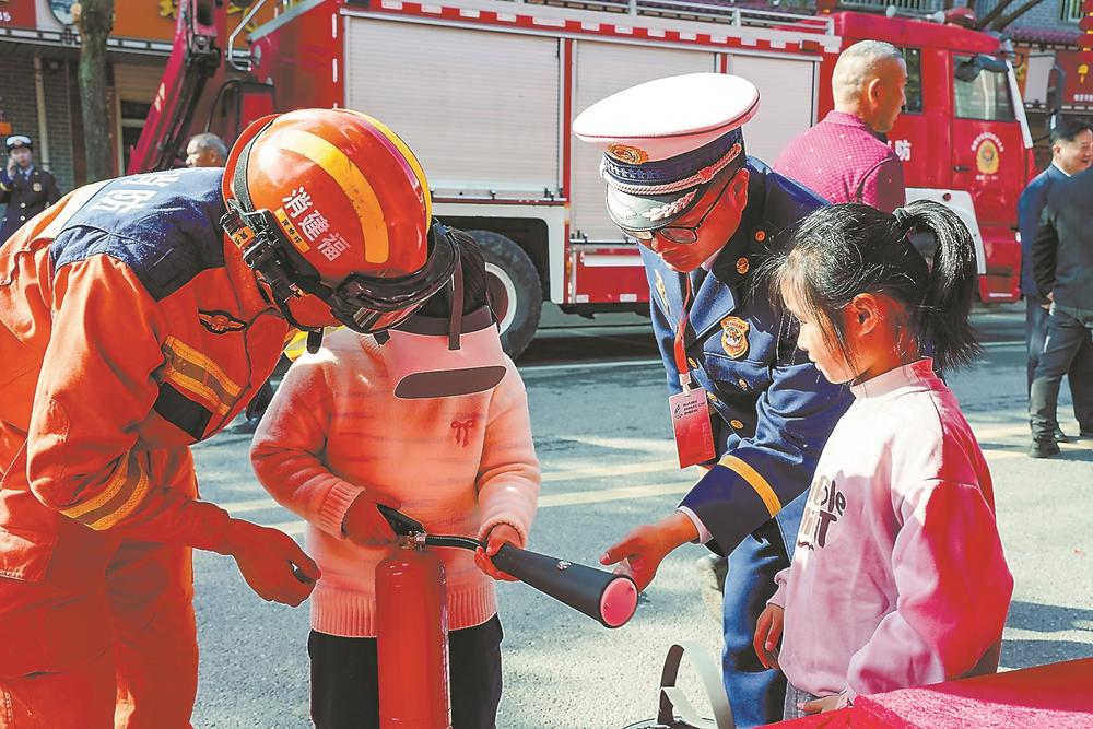 消防員指導群眾使用VR設備體驗模擬滅火。 (龍巖市消防救援支隊供圖)
