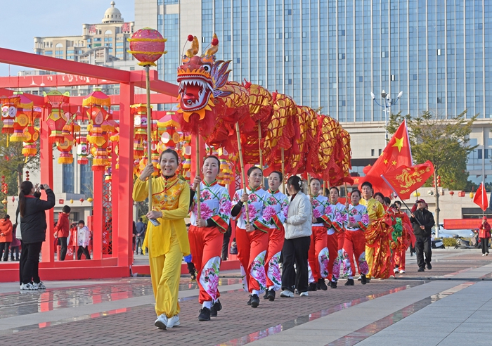 舞龍隊伍在非遺游園匯活動現(xiàn)場。林弘梫攝