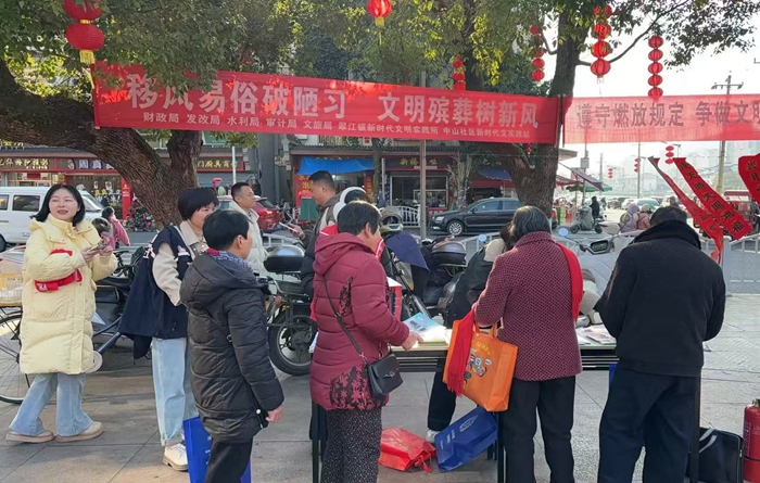 結(jié)合文化科技衛(wèi)生“三下鄉(xiāng)”、“新生活 新風(fēng)尚 新年畫”文明實(shí)踐活動等,發(fā)揮新時(shí)代文明實(shí)踐中心(所、站)、文化廣場、宗祠、休閑公園等陣地作用,在新時(shí)代文明實(shí)踐中心、翠園廣場、水茜鎮(zhèn)等地,組織開展“倡導(dǎo)文明殯葬 推進(jìn)移風(fēng)易俗”、“紅白理事會 引領(lǐng)新風(fēng)尚”、“抵制高額彩禮 革除殯葬陋習(xí)”等各類群眾喜聞樂見的移風(fēng)易俗主題宣傳活動30余場次,共發(fā)放文明殯葬倡議書800余份,活動現(xiàn)場還通過文明殯葬知識問答互動發(fā)放環(huán)保購物袋、年畫、抽紙等宣傳紀(jì)念品各200余份,向群眾詳細(xì)介紹文明殯葬、喪事簡辦等內(nèi)容320余人次,大大提高了群眾對文明殯葬的知曉率和參與度,讓文明殯葬的理念更加深入人心。