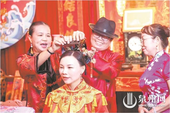 “近年來,結(jié)婚的年輕人數(shù)量逐年遞減,傳統(tǒng)婚俗文化也受到不小的沖擊?!睘榇耍齑喝A還積極投身于“泉州喜娘”的申遺工作,全力傳播閩南婚俗文化。