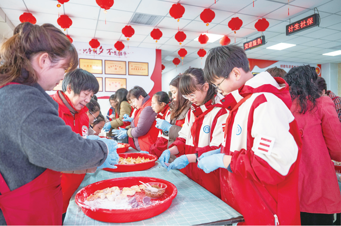 25日,在紅山社區(qū),城北小學(xué)的學(xué)生們與社區(qū)居民共同制作平潭傳統(tǒng)美食——拗九丸?!跋Mㄟ^(guò)參與傳統(tǒng)美食的制作,讓優(yōu)秀傳統(tǒng)文化代代相傳。”紅山社區(qū)居民楊欽說(shuō)。同日,東門(mén)社區(qū)舉辦“拗九送溫情孝老暖人心”主題活動(dòng)。活動(dòng)中,社區(qū)工作人員向居民們深入講解孝道文化,并為社區(qū)老人送上真摯的關(guān)愛(ài)與祝福。