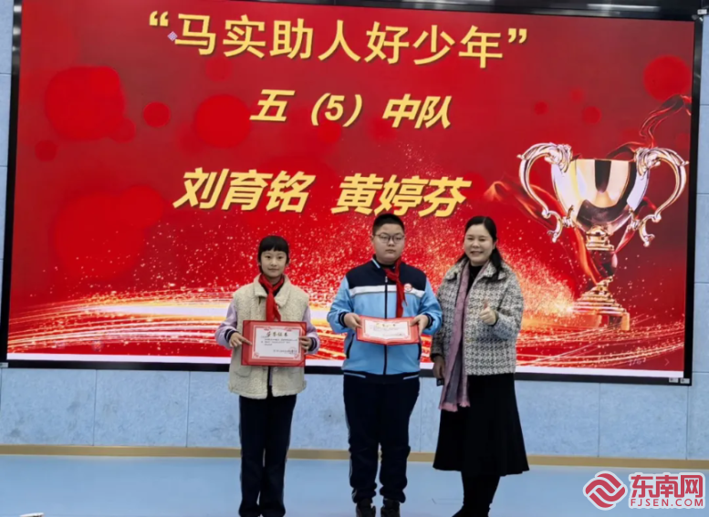 學(xué)校對劉育銘和黃婷芬兩位熱心學(xué)生進(jìn)行了表揚(yáng)。廈門市馬鑾灣實(shí)驗(yàn)學(xué)校供圖