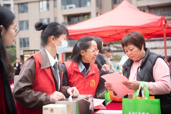 此外,活動還為群眾獻(xiàn)上了精彩的睦鄰文化文藝匯演和豐富的文化集市、志愿服務(wù)項目,設(shè)置移風(fēng)易俗宣傳互動環(huán)節(jié),以趣味游戲向群眾發(fā)出移風(fēng)易俗倡議,組織群眾向身邊好人、道德模范學(xué)習(xí),自覺丟掉“陋習(xí)”,弘揚文明新風(fēng)。這場豐富多彩、體驗感十足的活動,吸引了眾多居民參與,為小區(qū)注入了文化活力,讓群眾感受到志愿服務(wù)的溫暖。