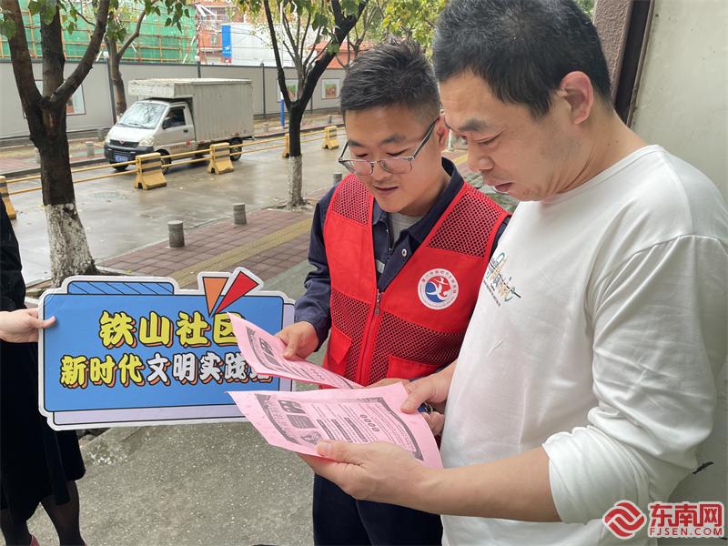 志愿者向居民普及雷鋒事跡(鐵山社區(qū)新時(shí)代文明實(shí)踐站供圖)