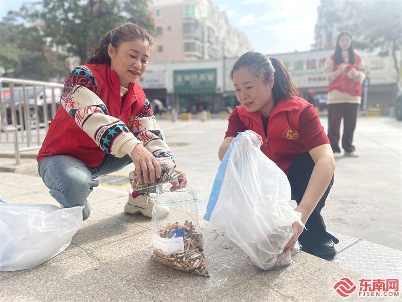 志愿者撿拾煙頭,踐行雷鋒精神(英村社區(qū)新時(shí)代文明實(shí)踐站供圖)
