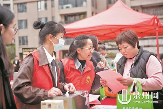 在永春美嶺新天地小區(qū)學(xué)雷鋒志愿服務(wù)活動(dòng)中,志愿者為群眾講解政策知識(shí)。(郭芳蓉 張?chǎng)?張文慶 攝)