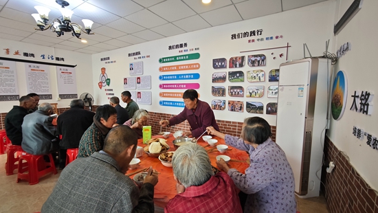 老人們在愛心廚房內(nèi)共享美食。大銘鄉(xiāng) 供圖