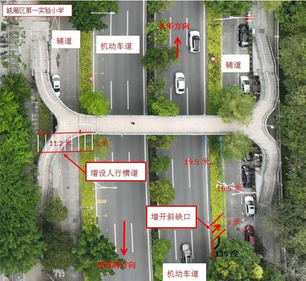 萬輝1號(hào)門路段曾是車輛的“腸梗阻”重災(zāi)區(qū),大量車輛在此交匯、擁堵。城廂交警聯(lián)合龍橋街道在天橋下綠化帶中,巧妙地開辟出4條學(xué)生進(jìn)入輔道,為擁堵路段植入了“分流支架”。此外,同步安裝標(biāo)識(shí)標(biāo)牌、導(dǎo)向牌,清晰指引車輛通行。聯(lián)合居委會(huì)人員積極引導(dǎo)居民出行,向居民宣傳交通新規(guī)和分流方案,讓居民能夠更好地配合交通疏導(dǎo)工作 。這一舉措成效顯著,該路段通行效率提升了40%,早高峰擁堵提前30分鐘結(jié)束。