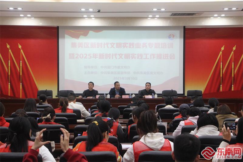 為進(jìn)一步推動(dòng)新時(shí)代文明實(shí)踐工作走深走實(shí),助推轄區(qū)精神文明建設(shè)再上新臺(tái)階,3月10日下午,廈門(mén)市集美區(qū)新時(shí)代文明實(shí)踐業(yè)務(wù)專題培訓(xùn)暨2025年精神文明建設(shè)推進(jìn)會(huì)在集美區(qū)人才培訓(xùn)中心舉辦。