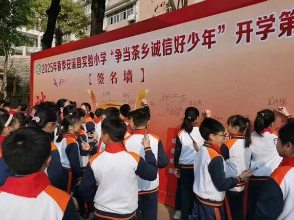 “爭當茶鄉(xiāng)誠信好少年”宣誓儀式暨簽名活動。安溪縣實驗小學 供圖