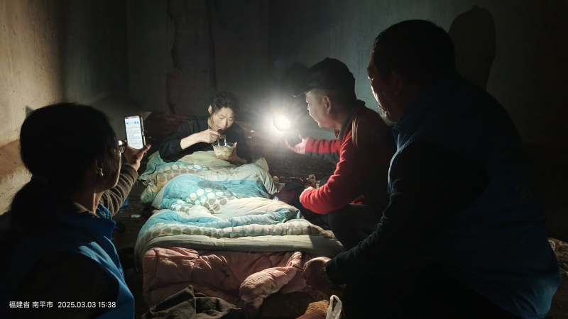 經(jīng)確認,該男子因突發(fā)疾病被困,已數(shù)日斷水斷糧,身體嚴重虛弱并伴有多種疾病。志愿者立即啟動應急救援機制,聯(lián)動建陽區(qū)救助、醫(yī)療等部門,救助服務中心主任等緊急趕往事發(fā)地,經(jīng)現(xiàn)場商議,先為被困者進行水分補充,再用流質(zhì)食物補充身體能量,歷經(jīng)2個多小時,終于成功將被困人員救出涵洞?!澳芑钪婧谩边@是楊某被抬出涵洞時說的第一句話。