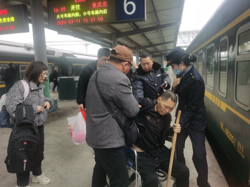 3月11日下午,一場特殊的返鄉(xiāng)行動在建陽區(qū)救助服務中心正式啟動。服務中心為被救助者免費備好行裝、購好了返鄉(xiāng)車票,備足路上服用的應急藥品,因被救助者楊某無法自主行走,救助服務中心、社工志愿者組成4人小組全程護送返鄉(xiāng)。在南平市高鐵站,車站不僅提供了輪椅,還迅速將乘客信息傳送至中轉(zhuǎn)站上饒火車站,請求上饒站提供幫助。列車駛?cè)肷橡堈緯r,站臺早已等候的志愿者推著加寬輪椅,在G1486列車長、乘務員協(xié)助下,與護送小組無縫對接。上饒站乘務員得知需轉(zhuǎn)乘K805列車時,主動在前引路,并協(xié)助抬舉輪椅上下階梯。在秀山火車站,輪椅早早就等候在站臺,車站值班員鄧倩特意開啟了綠色通道……鐵道線上的愛心接力,每一站都是溫暖的港灣,讓列車成為流動的“生命方舟”。