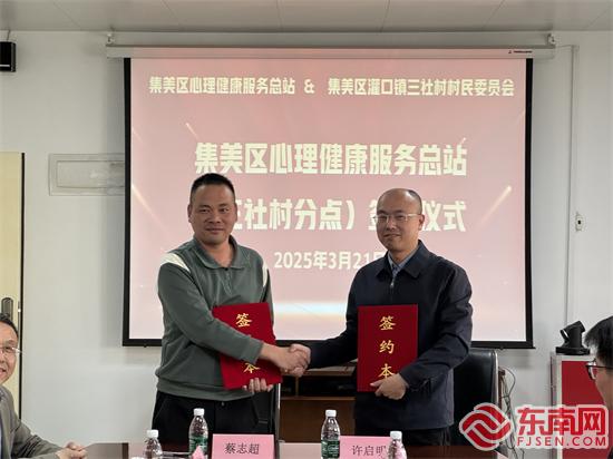 集美區(qū)委宣傳部二級調(diào)研員、文明辦主任寇恩東,灌口鎮(zhèn)宣委余更新,三社村書記蔡志超,三社村“兩委”成員及轄區(qū)村民代表出席啟動儀式?;顒釉诤灱s儀式中拉開序幕。集美區(qū)未成中心副主任許啟明、灌口鎮(zhèn)三社村書記蔡志超現(xiàn)場簽訂《心理總站三社村分點(diǎn)共建協(xié)議》。與會嘉賓共同為分點(diǎn)揭牌。儀式現(xiàn)場,紅綢覆蓋的牌匾在掌聲中徐徐揭曉,象征著心理健康服務(wù)進(jìn)一步扎根基層。