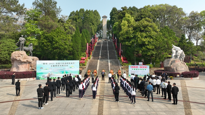 文明風3月28日訊 清明將至,翠柏凝春。近日,寧化縣新時代文明實踐中心、縣委宣傳部、縣退役軍人事務(wù)局、縣教育局等部門,在莊嚴肅穆的革命烈士紀念園舉行“賡續(xù)2025·百園千校祭英烈”主題活動。來自主辦單位、實驗小學的100余人懷著無比崇敬的心情,以文明、綠色的方式追思革命先烈,傳承紅色基因。